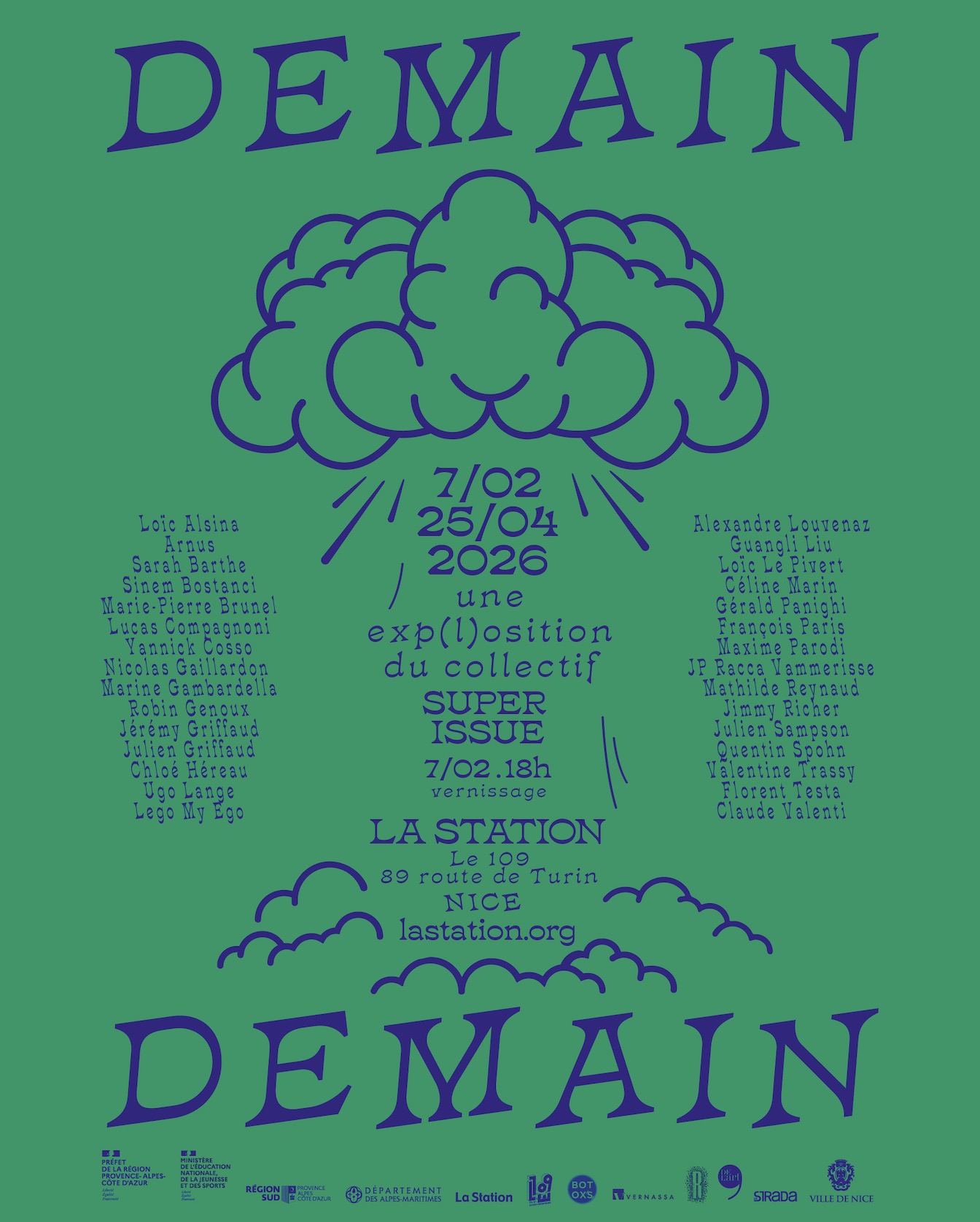 Exposition collective avec : Gérald Panighi, François Paris, Maxime Parodi, Marie-Pierre Brunel, Lucas Compagnoni, Yannick Cosso, Nicolas Gaillardon, Marine Gambardella, Robin Genoux, Jérémy Griffaud, Julien Griffaud, Chloé Héreau, Ugo Lange, Lego My Ego, Alexandre Louvenaz, Guangli Liu, Loïc Le Pivert, Céline Marin, JP Racca Vammerisse, Mathilde Reynaud, Jimmy Richer, Julien Sampson, Quentin Spohn, Valentine Trassy, Florent Testa, Claude Valent